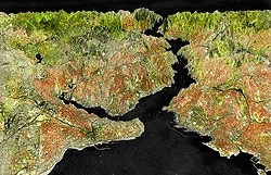 İstanbul Boğazı’na havadan baktığımızda Boğaziçi’nin iki yakasını ortadan elle kırılarak ikiye bölünmüş bir elmanın bölümlerine benzetebiliriz.