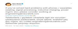 Elon Musk, ayrıca kendi hesabından şu Twiti atarak aradıkları personeli kısaca tanımladı. Aşağıda görüldüğü gibi, özünde oldukça basit bir duyuruydu. Ancak yalın olmasına rağmen seçim kriterlerinde dikkat edilecek bir nokta vardı. Elektronik cihazlarla ilgili zor soruları çözmek gibi önemli bir fark göze çarpıyordu.