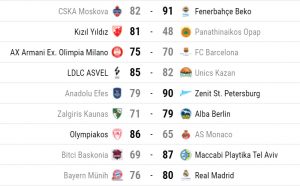 Turkish Airlines Euroleague 8. hafta sonuçları ve 9. hafta karşılaşmaları