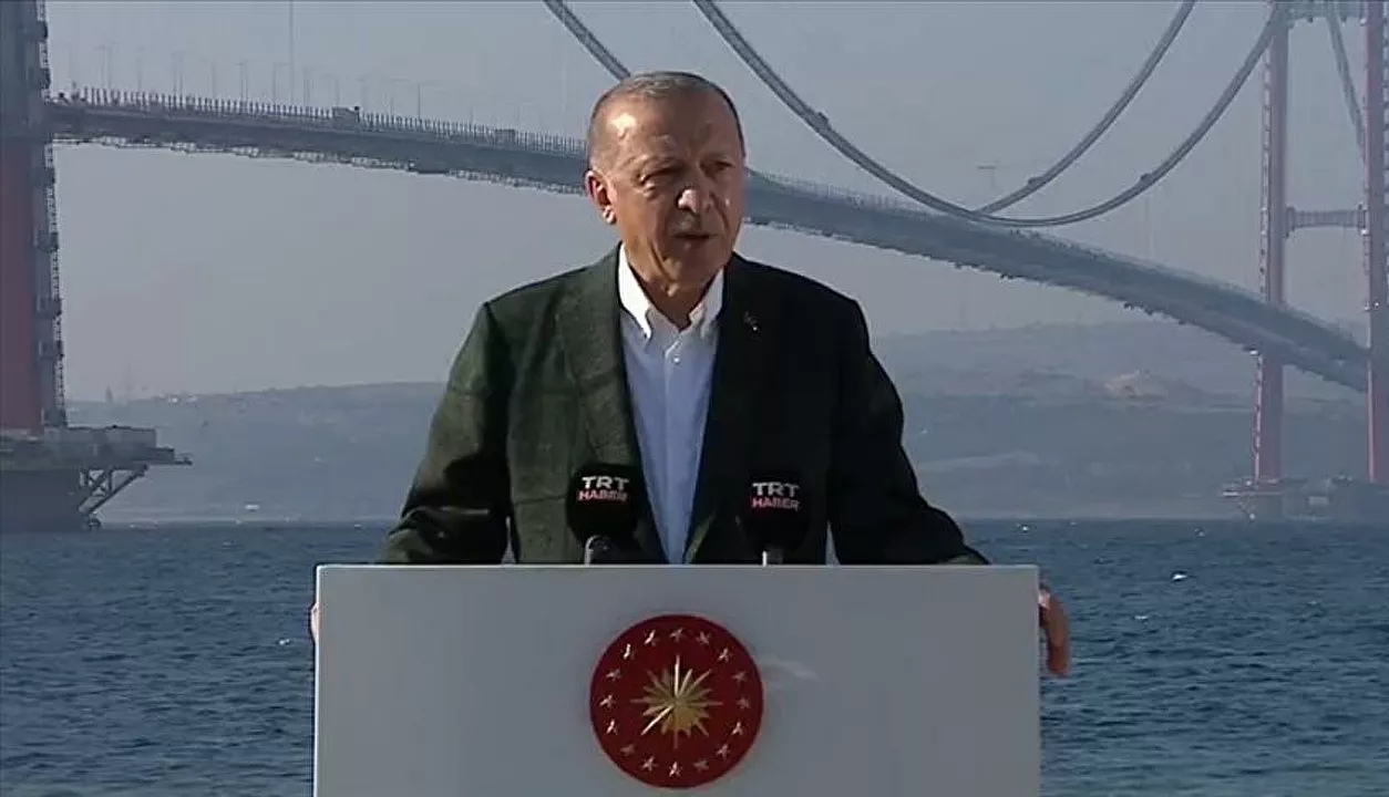 Erdoğan konuşmasında, yatırım tutarı 2.5 milyar euro olan ve Yap- İşlet- Devret modeliyle inşa edilen köprü ile Türkiye’nin yeni bir sıçramayı gerçekleştirmiş olacağını ifade etti.