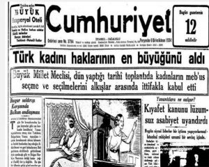 3 Nisan 1930’da Belediye Kanunu’nunda yapılan düzenlemeyle yerel siyasette yer alma ve yöneticileri belirleme hakkı elde eden cumhuriyet kadınları, en demokratik haklarını ilk kez bu yılın sonuna doğru gerçekleşen seçimlerde kullandı. Çok sayıda kadın belediye meclislerine girdi.