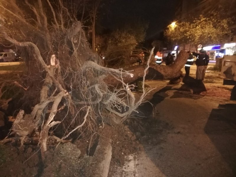 İzmir’de dün akşam saatlerinde etkili olan kuvvetli fırtına gece saatlerinde şiddetini artırdı. Kuvvetli rüzgar Buca ilçesinde ağaçları kökünden sökerken, elektrik direklerini devirdi.
