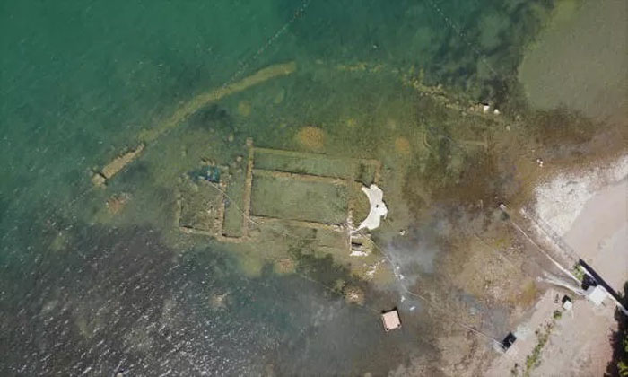 Suyun 2 metre derinliğindeki bazilika, dron ile net bir şekilde görüntülendi. Bazilikanın bulunduğunu hatırlatan Ali Karaman “Bazilika bile çekilmeden dolayı su üstüne çıktı. Su altı müzesi beklerken, su üstü müzesine dönüştü” dedi.
