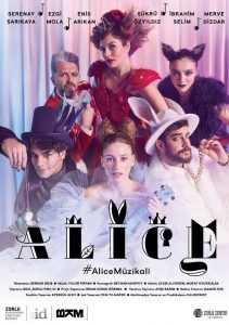 Lewis Carroll tarafından yazılan ve 174 dile çevrilerek edebiyatın muazzam eserlerinden biri olma özelliğine sahip olan “Alice Harikalar Diyarında” karakterleri sıralayalım; Serenay Sarıkaya ‘’Alice’’, Ezgi Mola ‘Kraliçe’, Enis Arıkan ‘Tavşan’, Şükrü Özyıldız ‘Şapkacı’, İbrahim Selim ‘Kral’, Merve Dizdar ‘Kedi’ olarak izleyicinin karşısına çıkıyor.