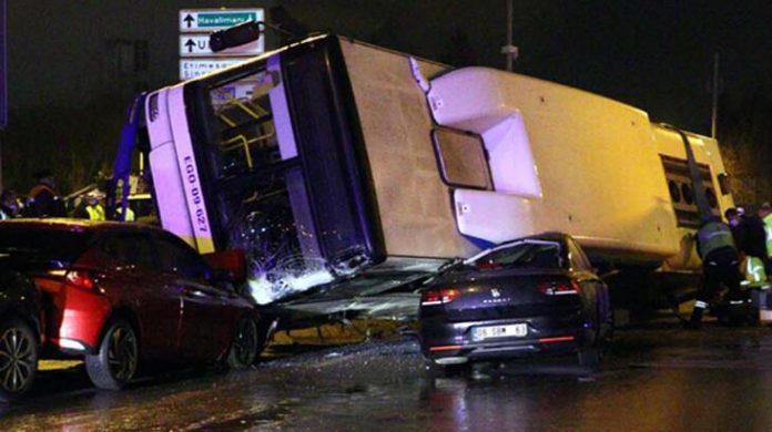 Daha sonra kaldırıma çıkıp yön levhasına çarpan otobüs, bulvara açılan Rajiv Gandhi Caddesi’nde bulunan 2 otomobilin üzerine devrildi. O sırada 34 DCK 683 plakalı otomobil de üzerine otobüsün devrildiği, otomobillerden birine arkadan çarptı.