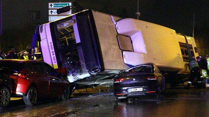 Ankara’da feci kaza! Otobüs, 2 otomobilin üzerine devrildi. Çok sayıda yaralı var.