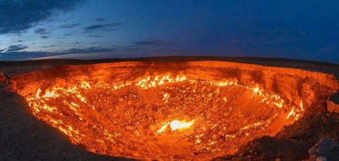 Eski Sovyetler Birliği döneminde jeologların çalışması sırasında yanlışlıkla oluşan kraterin ateşi 1971’den bu yana aktif durumda. Cehennem Kapısı diye de bilinen krater, turistlerin ilgisini çekiyor.