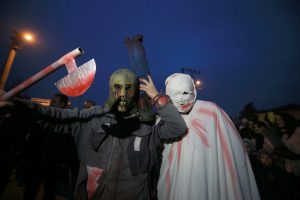Belediye hoparlörlerinden korkuyu çağrıştıran sesleri çalındı. Grup, daha sonra yürüyüş yaparak korkutucu sesler çıkardı. Bazı kişiler evlere ve işletmelere giderek vatandaşları korkuttu.
