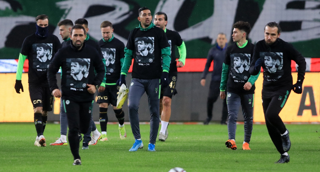 Ayrıca İttifak Holding Konyasporlu futbolcular, attıkları golün ardından Ahmet Çalık’ın isminin yazılı olduğu formayı havaya kaldırdılar.