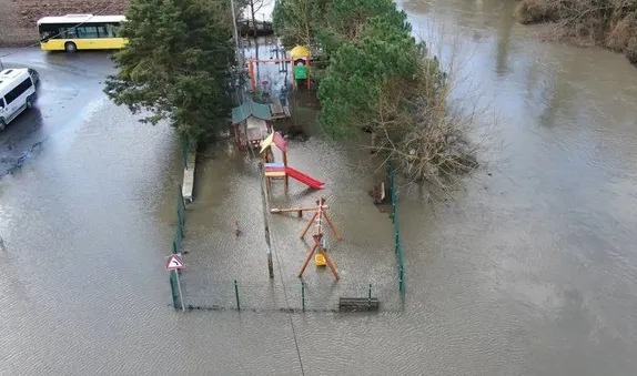 Sel, su baskınlarına sebep oldu. Cadde üzerinde bulunan çocuk parkı su altında kaldı. Sürücüler ise mahalleye ulaşmak için farklı yollar kullandı.