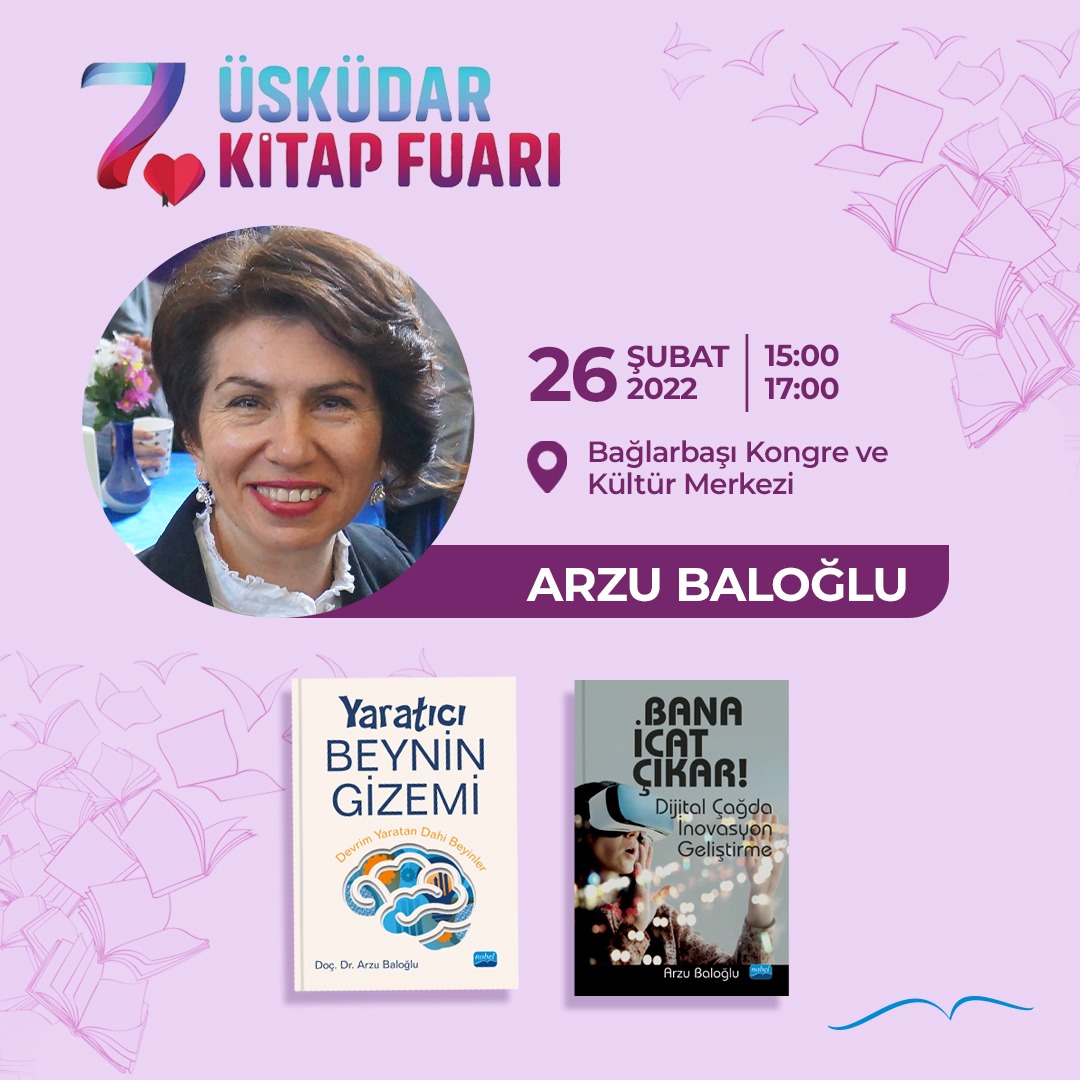 Kent Ekranı Yazarı Doç.Dr. Arzu BALOĞLU da fuara;’ Yaratıcı Beynin Gizemi’ ve’ Bana İcat Çıkar’ isimli eserleriyle katılacak .