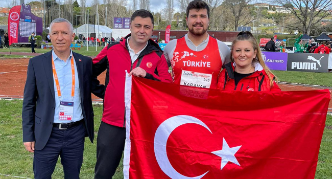 Türkiye Atletizm Federasyonundan yapılan açıklamaya göre, Leiria kentinde yapılan organizasyonda Alperen Karahan, 19,81 metrelik derecesiyle 23 yaş altı erkekler gülle atmada kürsünün birincilik basamağına çıktı.