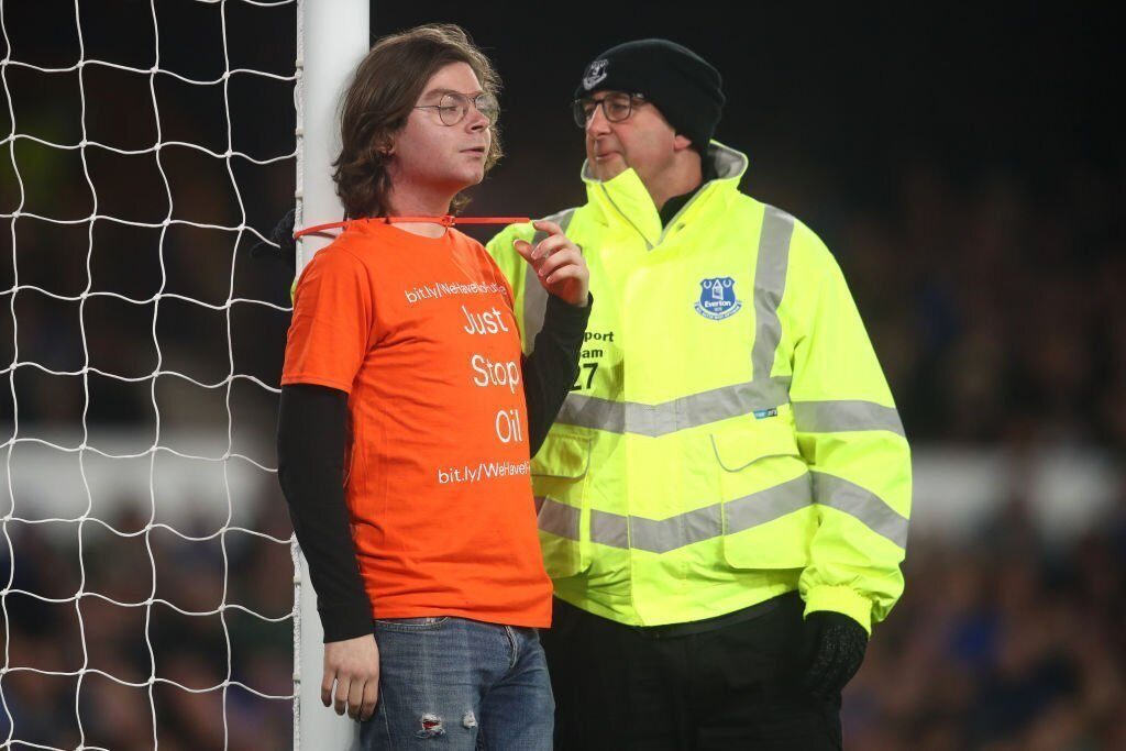 Everton maçında boynunu kale direğine plastik kelepçe ile bağlayan kişinin, Britanya’da fosil yakıt yatırımına karşı çalışan Just Stop Oil adlı aktivist kampanya adına protesto gerçekleştirdiği açıklandı.