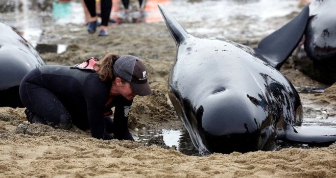 Yeni Zelanda kara sularındaki en yaygın balina türü olan ve boylarının 6 metreye kadar ulaştığı bilinen pilot balinalar, toplu karaya vurmalarıyla dikkati çekiyor.