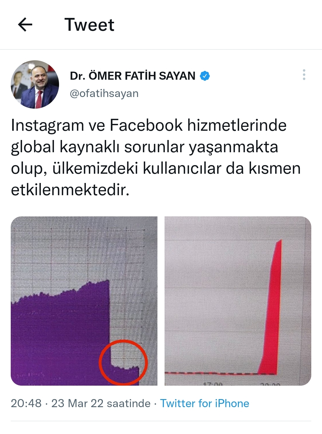 Ulaştırma ve Altyapı Bakan Yardımcısı Ömer Fatih Sayan, sosyal medya hesabından yaptığı paylaşımda, Instagram ve Facebook hizmetlerinde global kaynaklı sorunların yaşandığını bildirdi.