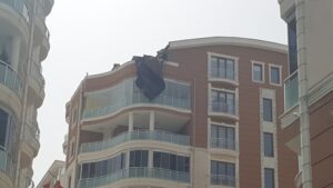 Kuyumcu Bayırı Sokak’taki müstakil evin üzerine yan binanın çatısı düştü. Düşme sonucu müstakil evin çatısı çöktü. Evde bulunan 82 yaşındaki Zeliha Yolalmaz ve oğlu Ümit Yolalmaz evi altında kaldı.