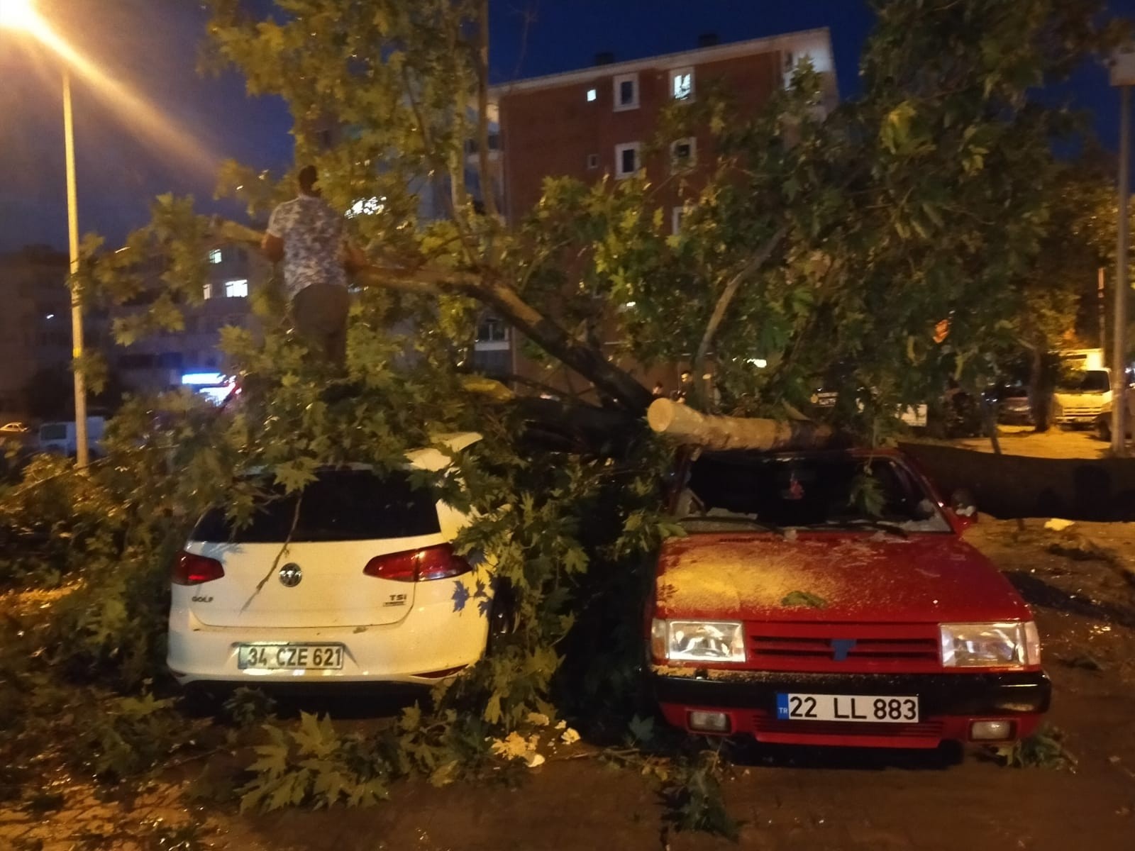 Fırtınanın şiddetli bir şekilde etkili olmasıyla Edirne’de bulunan bazı evlerin çatıları uçtu, ağaçlar devrildi yolları kapattı.