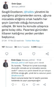 Çapa, 1 ay önce ayrıldığı Halk TV’nin yönetimiyle ‘geri dönüş’ konusunda uzlaştıklarını açıkladı.