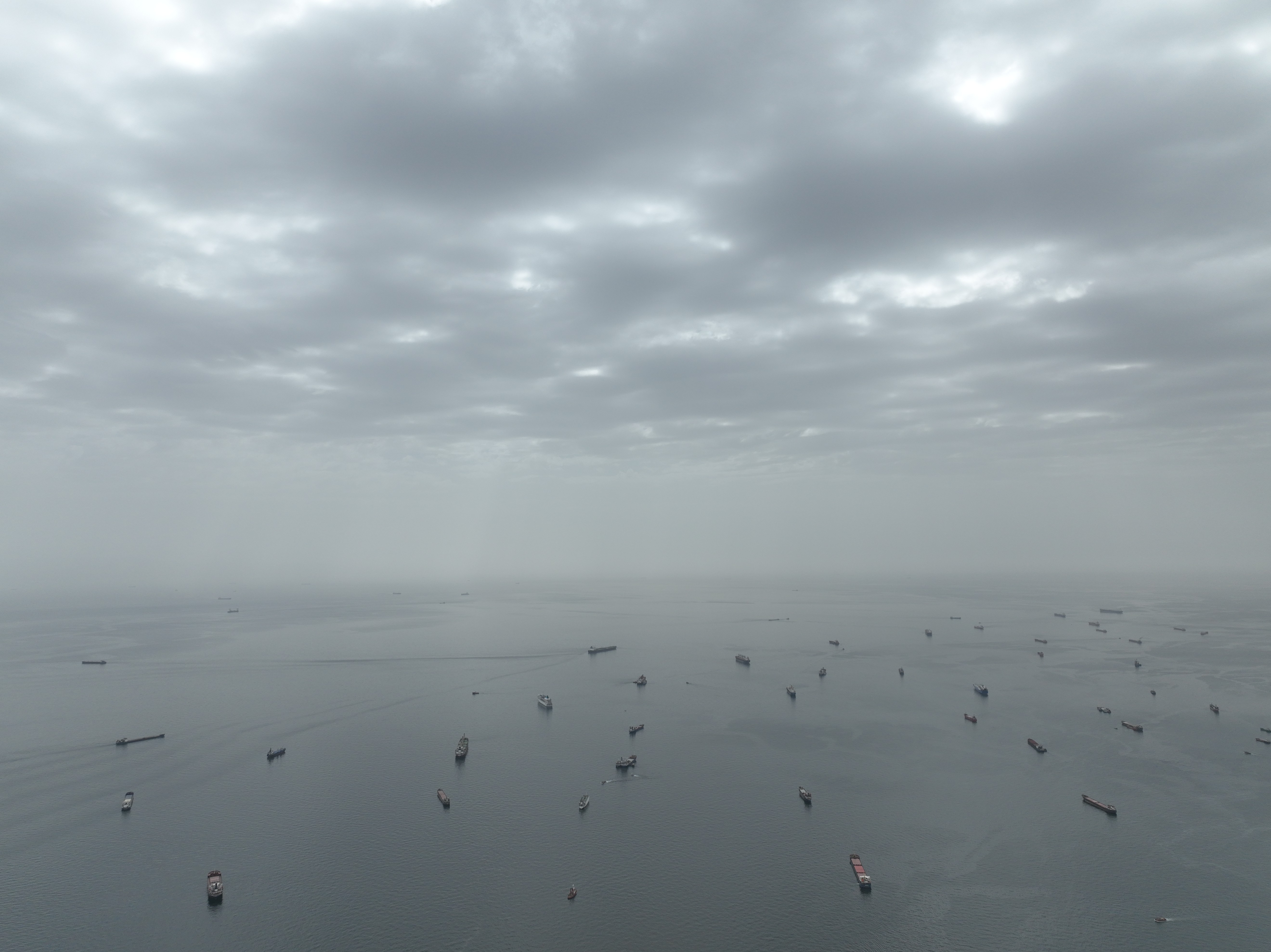 Gökdelenleri kaplayan çöl tozları havadan dron ile görüntülendi.