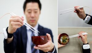Japonya’daki araştırmacılar , tuz alımını kesmeye ihtiyaç duyan insanlara yardımcı olmak amacıyla tuzlu tatları artırmak için elektronik yemek çubukları geliştirdiler.