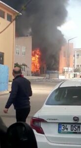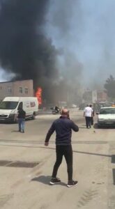 Çevre ilçelerden de duyulan patlamanın ardından fabrika alev alev yanmaya başladı.