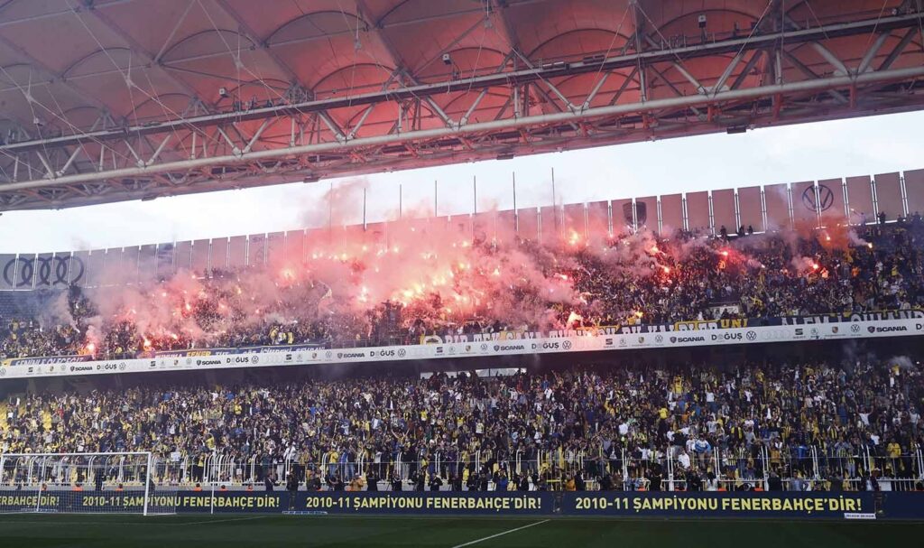 Sarı-lacivertli taraftarlar, meşaleler yakıp tezahüratlar yaparak takımlarına destek olurken, açılan pankartlarda ise Trabzonspor’a gönderme yapıldı.