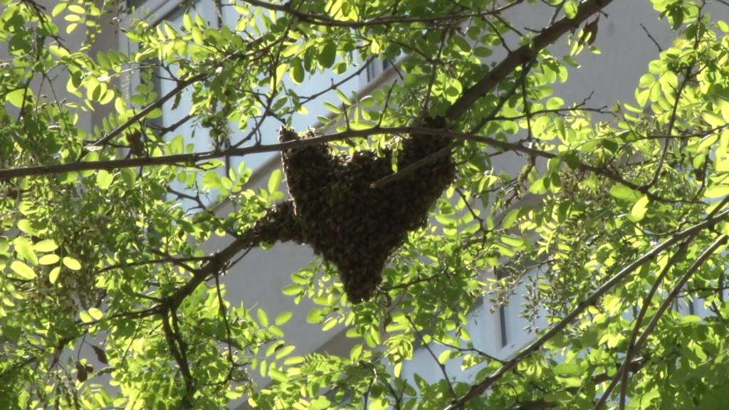 Kadıköy’de cadde ortasında Fatih Bostan isimli vatandaşın ağaçta bakımıyla ilgilendiği arılar oğul verdi.