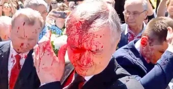 Polonya’nın başkenti Varşova’da, 9 Mayıs Zafer Bayramı etkinliklerine katılan Rusya’nın Polonya Büyükelçisi Sergey Andreyev’in yüzüne kırmızı boya atıldı.