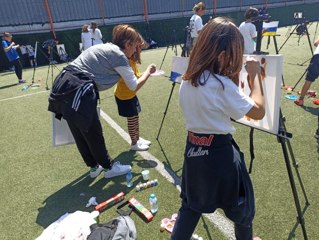 Tarabya Final Okullarında düzenlenen Tuval Şenliği’nde kalem tutan minik eller, fırçayla ‘yazdı’ bu kez.
