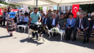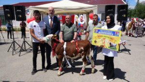 Yarışmada birinci olan buzağı sahiplerine süt sağma makinesi, ikinciye çeyrek, üçüncüye ise gram altın hediye edildi.