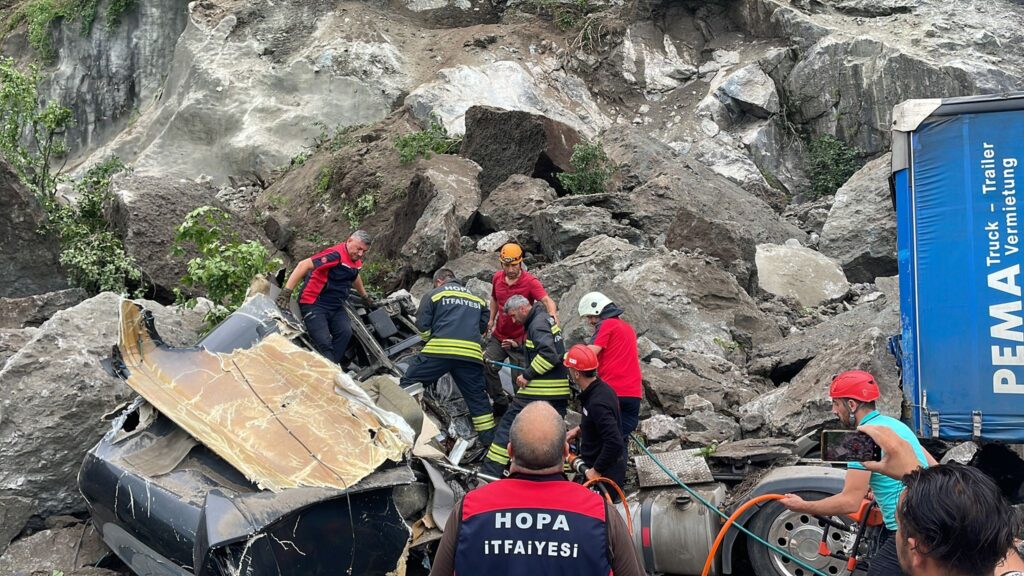 Artvin’in Kemalpaşa ilçesinde TIR’lar heyelanın altında kaldı: 1 ölü, 2 yaralı