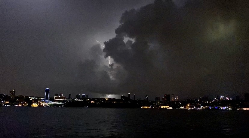 İstanbul için beklenen yağış gece saatlerinde Anadolu Yakası sahil kesimlerinde ve bazı ilçelerde başladı. Sahil kesimlerinden görülen şimşek çakmaları ise geceyi gündüze çevirdi.
