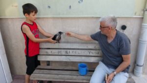 Karganın sıcaktan etkilendiğini düşündüklerini ifade eden okul görevlisi Fuat Polat ise “Sabah geldiğimizde okulumuzun bahçesindeydi. Karnını doyurdu şimdi de serinletiyoruz. Galiba sıcaktan böyle oldu. Yanımızdan gitmiyor bize alıştı” şeklinde konuştu.
