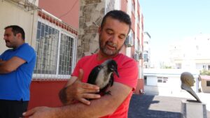 Mersin’de sıcaktan baygın düşerek okul bahçesine sığınan karga suyla serinletilince kendine geldi. Görevliler kargaya toparlanması için bir kap su ve ıslanmış ekmek kırıntısı ikram etti.