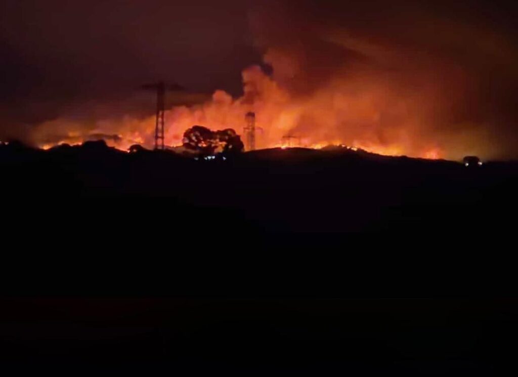 Rüzgârın da etkisiyle zaman zaman ürkütücü boyuta ulaşan alevler, Edirne’nin Meriç ilçesine bağlı sınır köylerden de görülebiliyor.