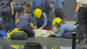 Ünlü Mirror Grubun Hong Kong’daki konseri sırasında sahnenin üstündeki dev bir ekran sahnedeki dansçıların üstüne düştü.