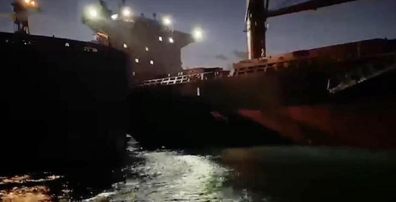 Daha sonra Oldendorff isimli gemi , Providence’a isimli gemiye yandan çarptıktan sonra sürterek sürüklenmeye devam etti.