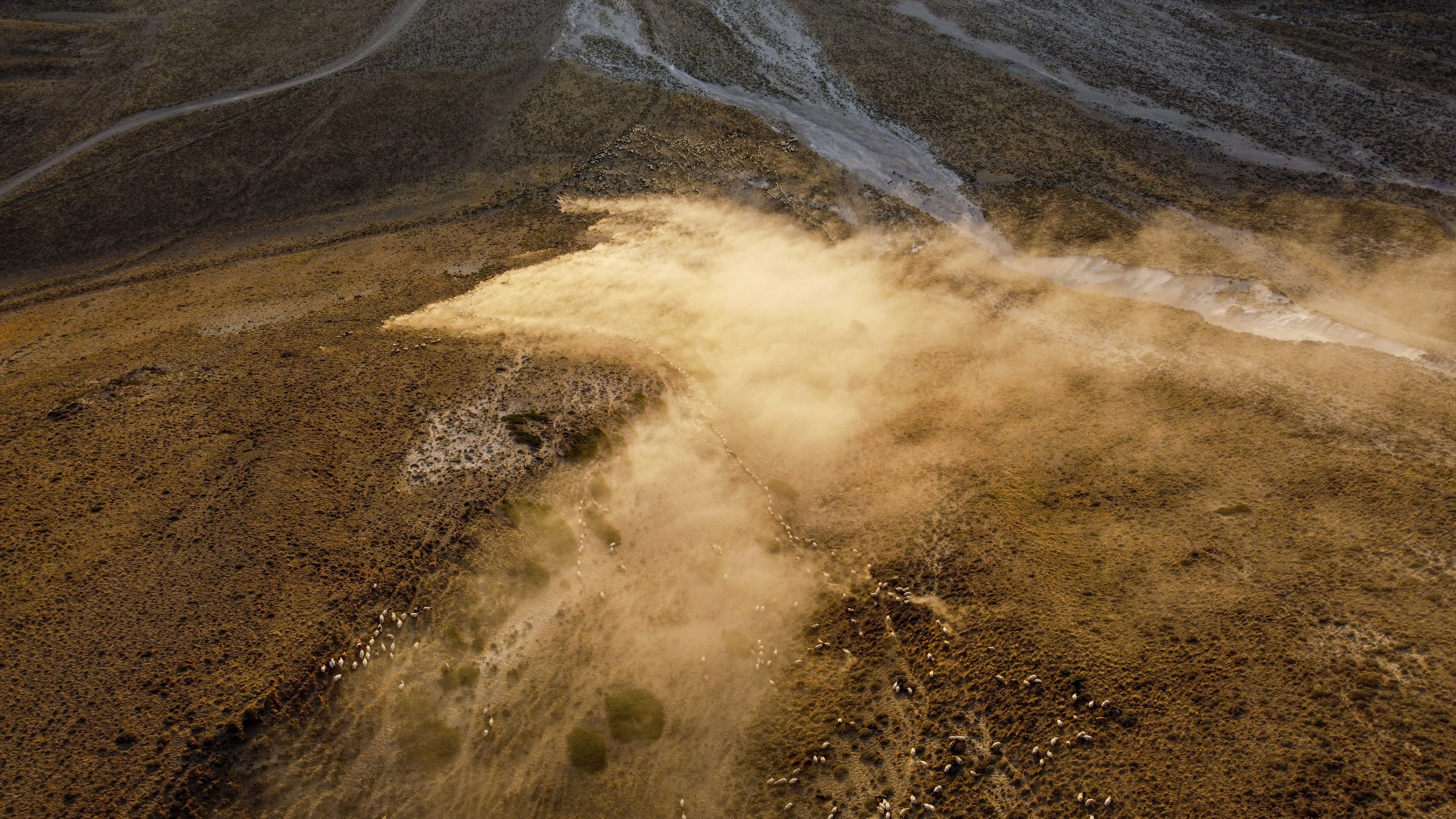 Koyun sürülerinin tozlu yolda ilerleyişi, çoban ve koyunları zorlarken gün batımına doğru oluşan siyah, beyaz ve kızıl renkler ise seyri doyumsuz görüntüler ortaya çıkarıyor. Özellikle Nemrut Kraterine inmek için dik vadilerden inmek zorunda kalan koyunların inişteki mücadelesi ise zorlu yolculuğu gözler önüne seriyor. Tozu dumana katarak yolculuklarını sürdüren koyunların çıkardığı toz bulutu ise kilometrelerce devam ediyor.