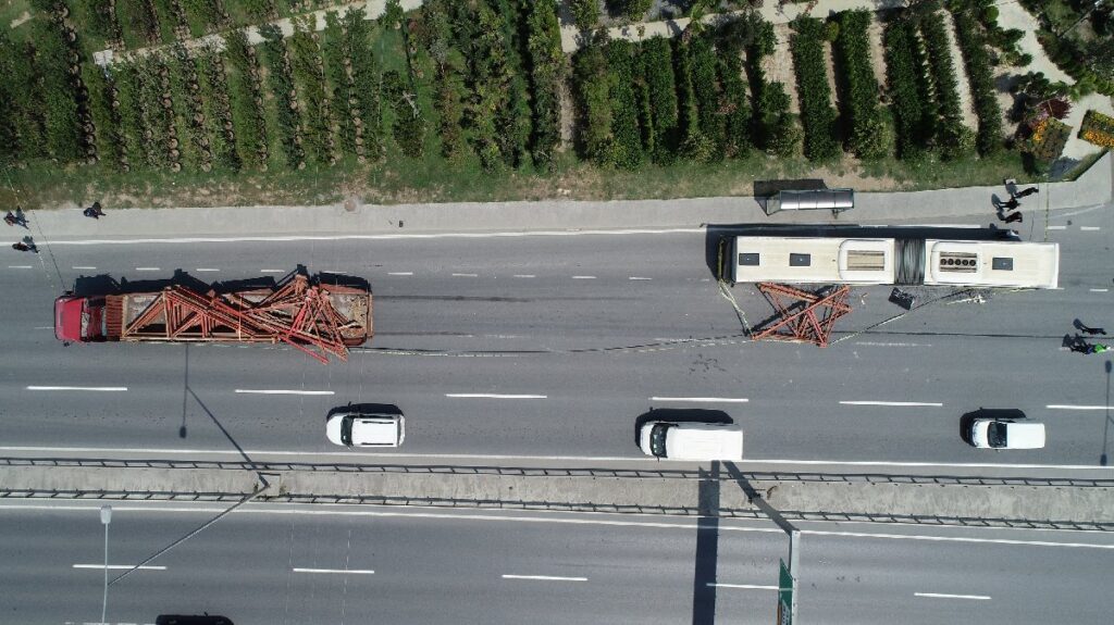 İstanbul Arnavutköy’de kamyondan düşer demirler yanından geçen İETT otobüsüne saplandı.