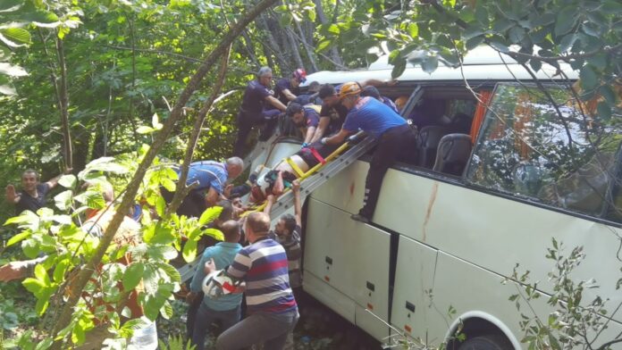 Kütahya Tavşanlı’dan Bursa Mudanya’ya yola çıkan tur otobüsü, Domaniç mevkisinde şarampole yuvarlandı.