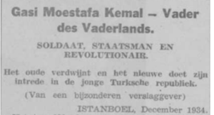 Son olarak Zutphense Courant, Atatürk’ü diktatörlük motifleriyle tartışırken, De Telegraaf ve De Sumatra Post’taki bir manşet şu şekildedir: ”Diktatör Değil, Gönüllerin Kazananı”.