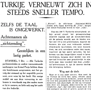 Rotterdamsch Nieuwsblad adlı gazete, Türkiye’nin iç ve dış siyasette yenilendiğini vurgulayarak şunları söylemiştir: “Türkiye’nin dış- ve iç yenilenmesi: Gazi Mustafa Kemal Paşa’nın adı artık Kemal Atatürk’tür.”
