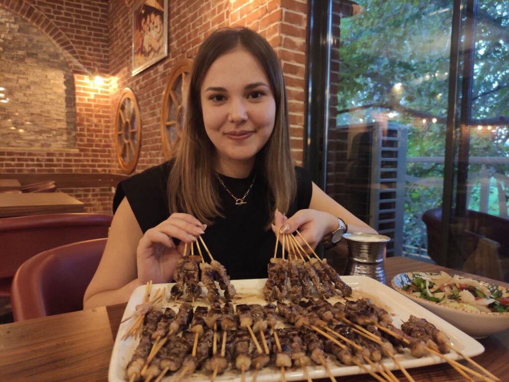 110 kilodaki erkeğin 100 adet çöp şişi zorlanarak yediği sofranın başına geçen 54 kiloluk genç kız, 43 dakikada 240 tane çöp şiş yiyerek 13 bin 650 TL’lik büyük ödülün sahibi oldu.