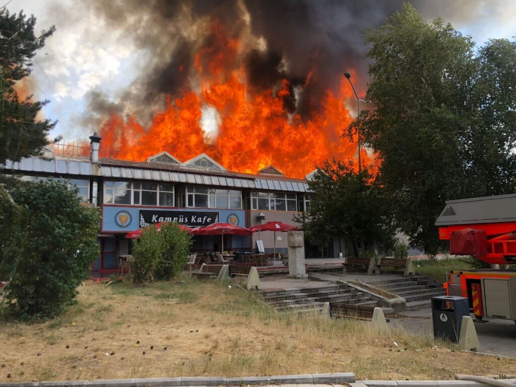 Büyük panik oluşturan yangın dolayısıyla patlama riskine karşılık kampüs içerisindeki trafik akımı ise kesildi.