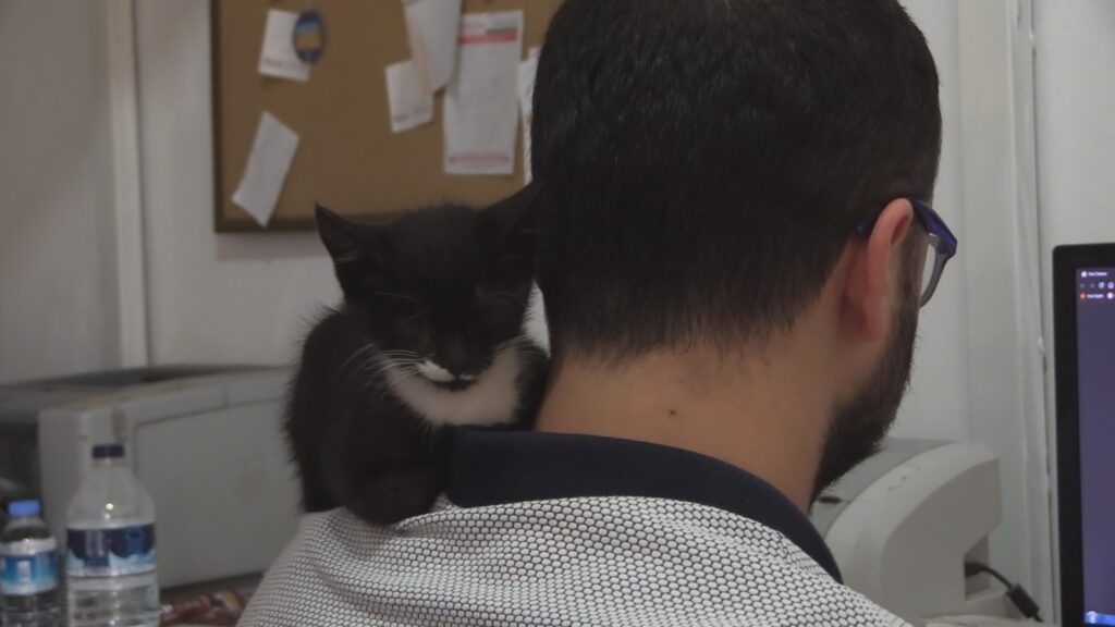 Sevimli kedinin ofislerinin maskotu haline geldiğini anlatan Atıcı, “Herkesin sokaktaki kedileri sahiplenmelerini istiyoruz” diye konuştu.