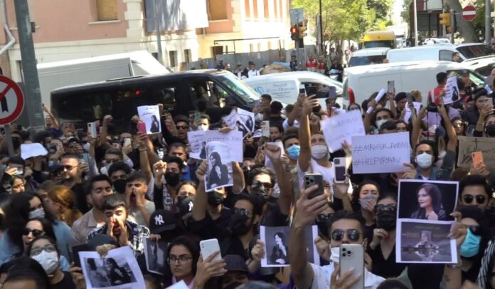 İran’da Mahsa Amini’nin gözaltında hayatını kaybetmesi İstanbul’daki İran Başkonsolosluğu önünde kadınlar tarafından protesto edildi.