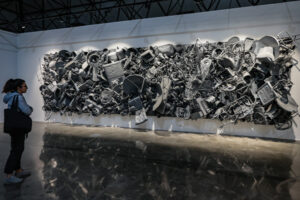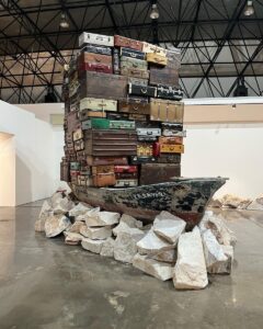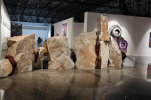 Küratörlüğünü Şener Özmen’in üstlendiği sergide, büyük boyutlu enstalasyonlar, video işleri, yağlı boya tablolar ve metal formların taşla tamamlandığı heykel çalışmaları sergileniyor.