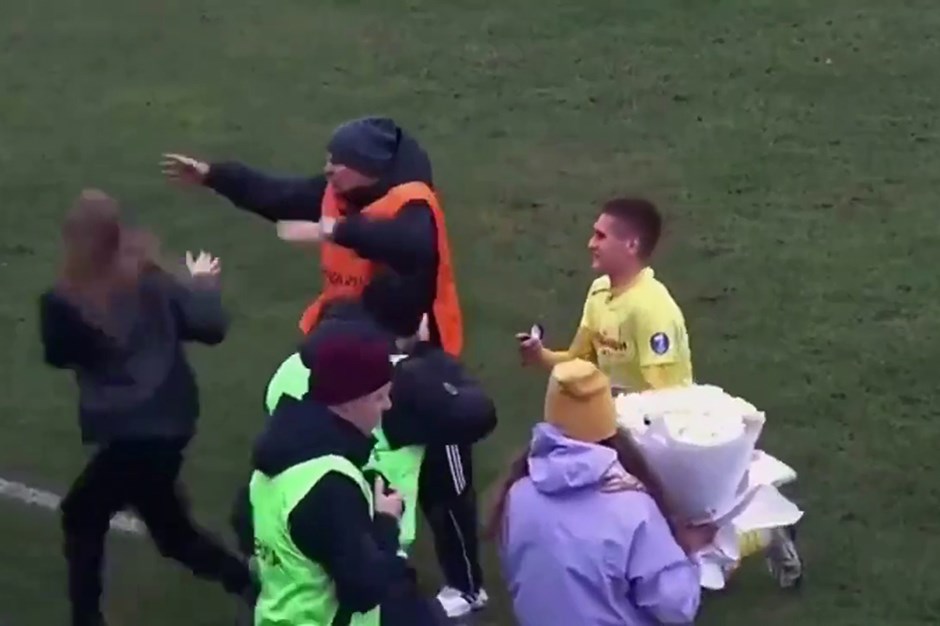 Belarus 2. Ligi’nde oynayan Vladislav Shubovich, sevgilisine sahada evlilik teklifi yapmak istedi ancak olaydan habersiz olan güvenlik görevlisi kısa süreli olsa da gerginliğe neden oldu.