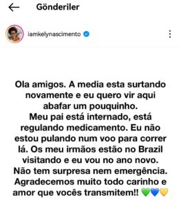 Pele’nin kızı Kely Nascimento, Instagram’da Pele’nin hastanede olduğunu ancak “acil durum veya vahim bir durum olmadığını” yazdı.