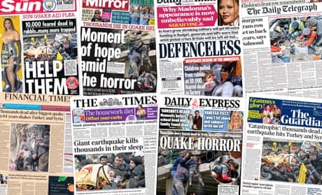 Guardian birinci sayfasında Diyarbakır’da enkaz altından çıkartılan bir kız çocuğunun fotoğrafını kullanırken, “Feci”: Türkiye ve Suriye’yi vuran depremde binlerce ölü” başlığını atıyor. Gazete “Son 100 yılın en güçlü sarsıntıları şehirleri harabelere çevirdi” diyor.